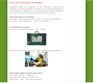 Finalmente están los resultados de los diferentes concursos del Centenario. Queremos agradecer y felicitar a todos los participantes por su gran trabajo, la dedicación y la gran calidad de las obras presentadas. Los invitamos a seguir formando parte de la historia de Vedra.